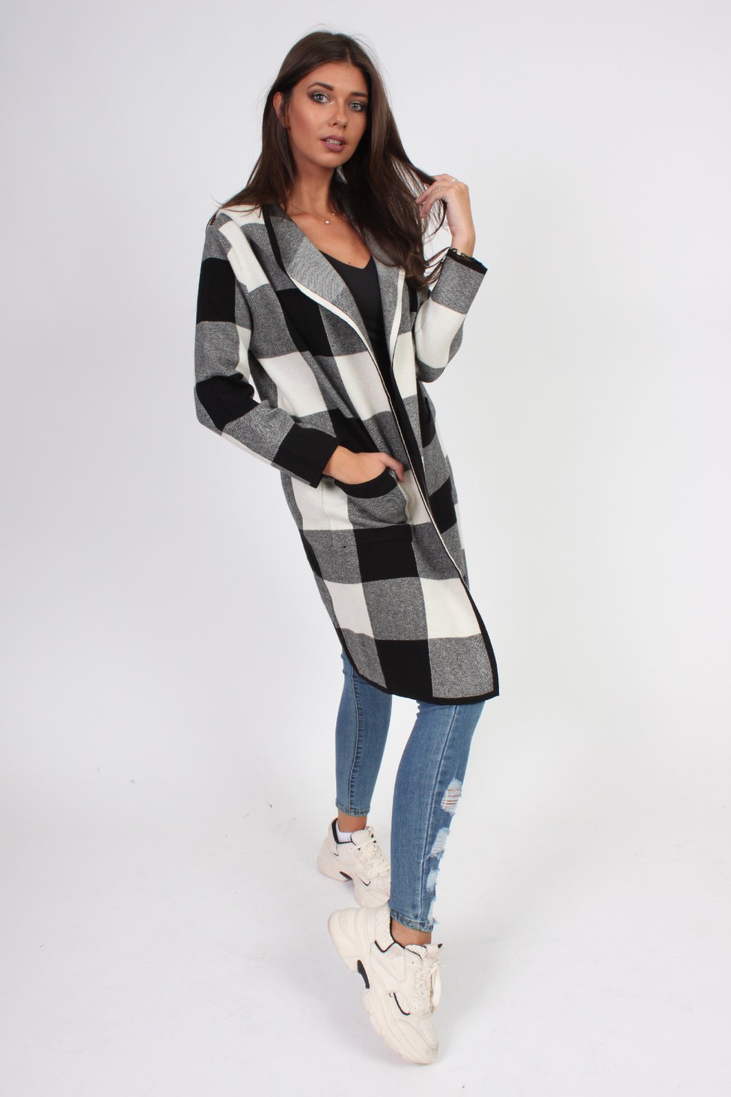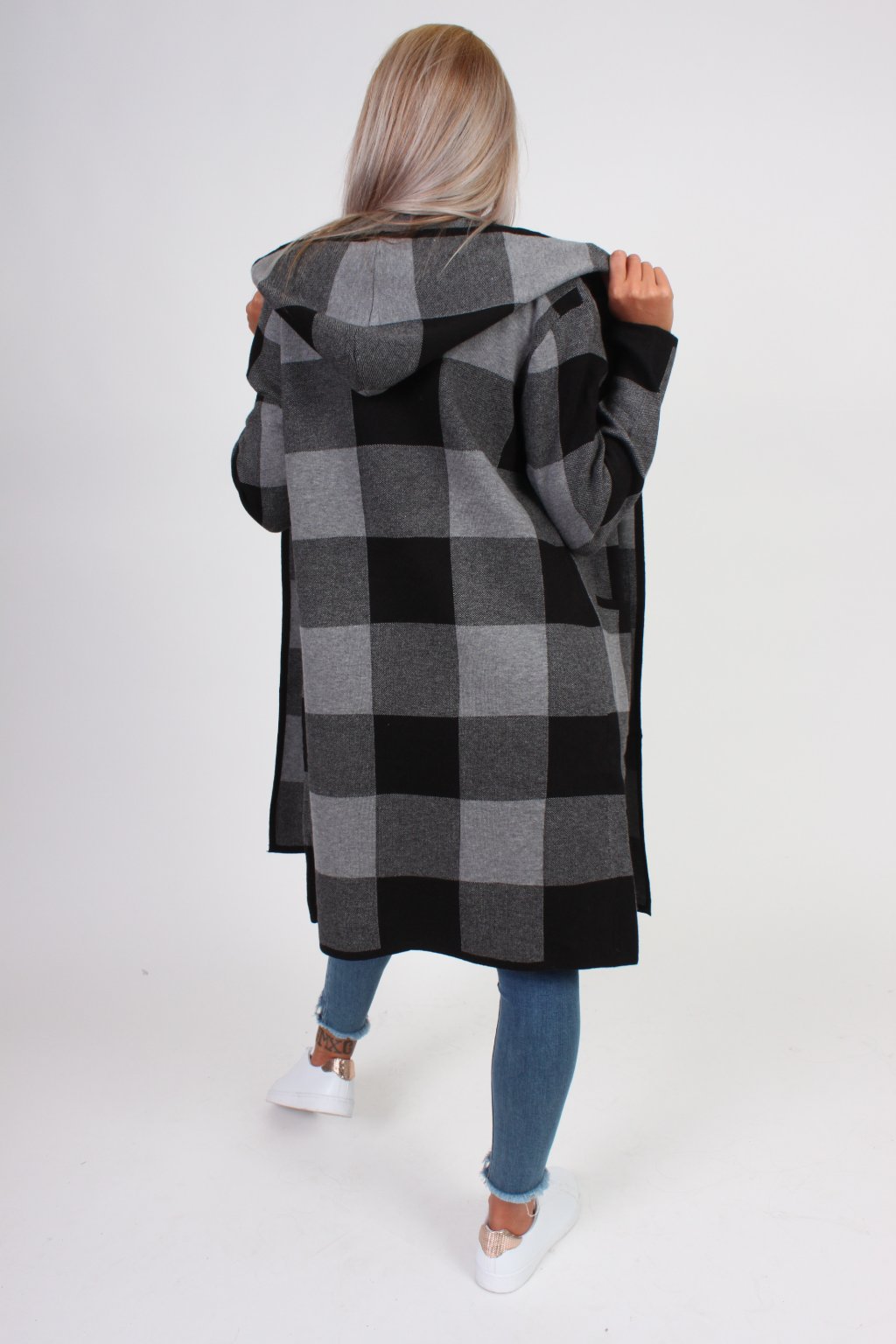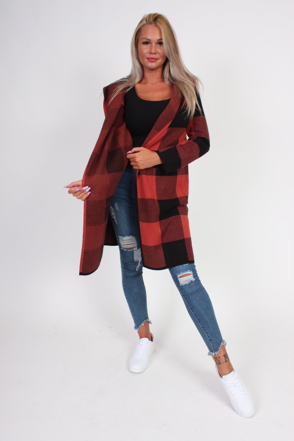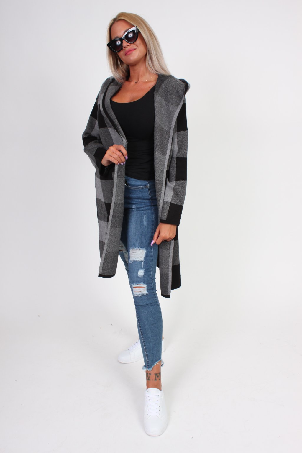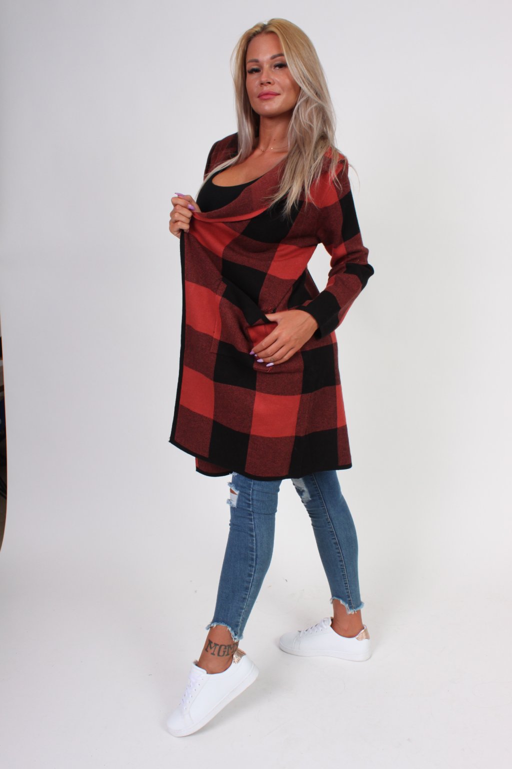 Károvaný kardigan MODLIDAND s kapucí patří mezi nestárnoucí klasiku. Dostupný je ve třech barevných variantách. Modelka měří168 cm a nosí velikost S/M.