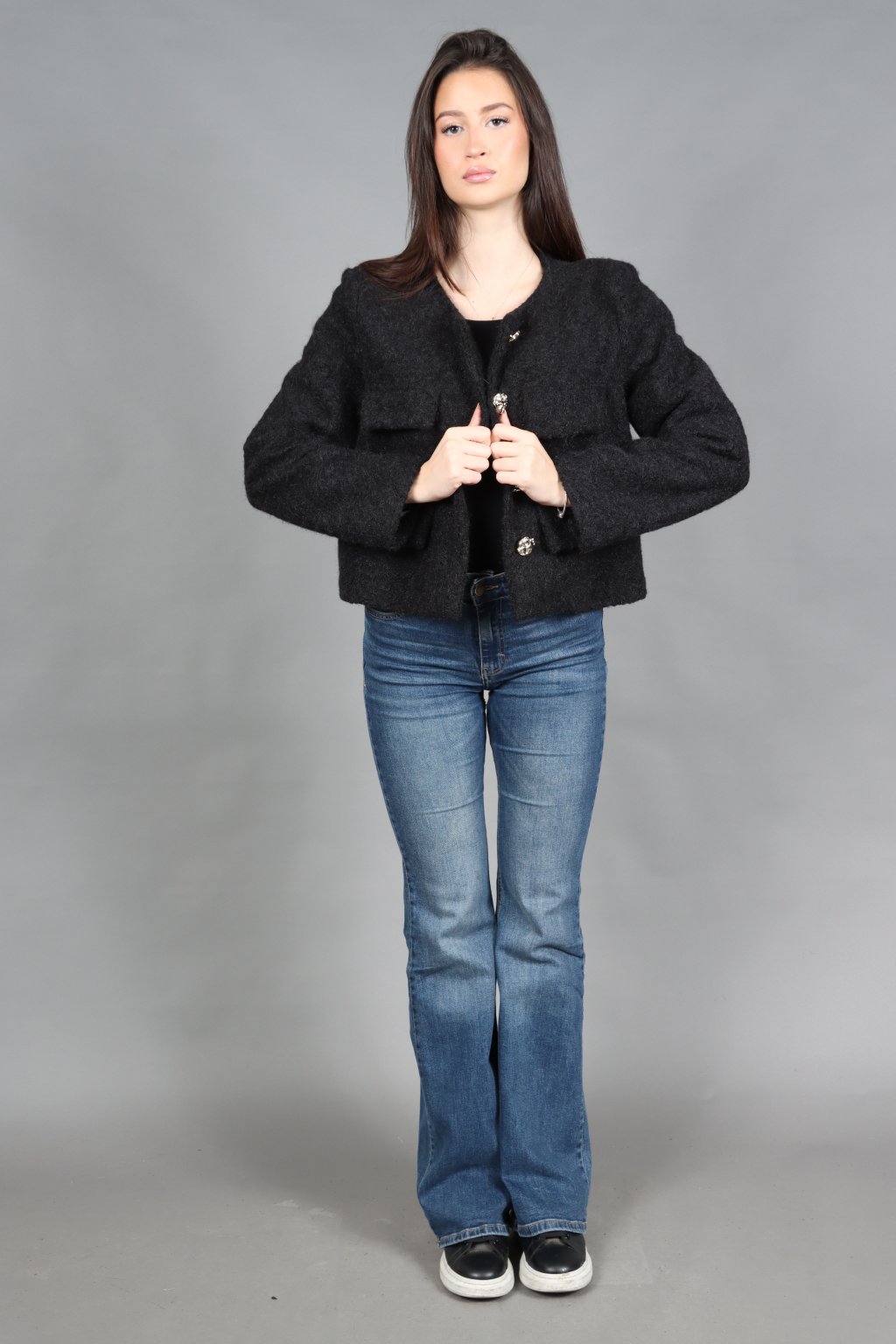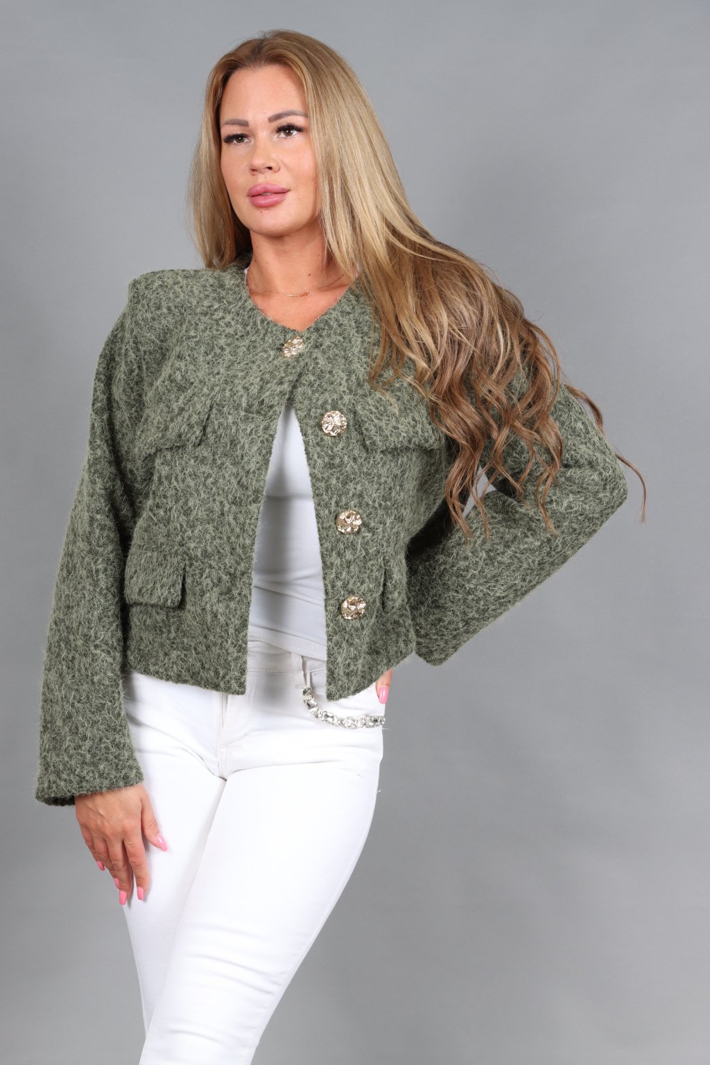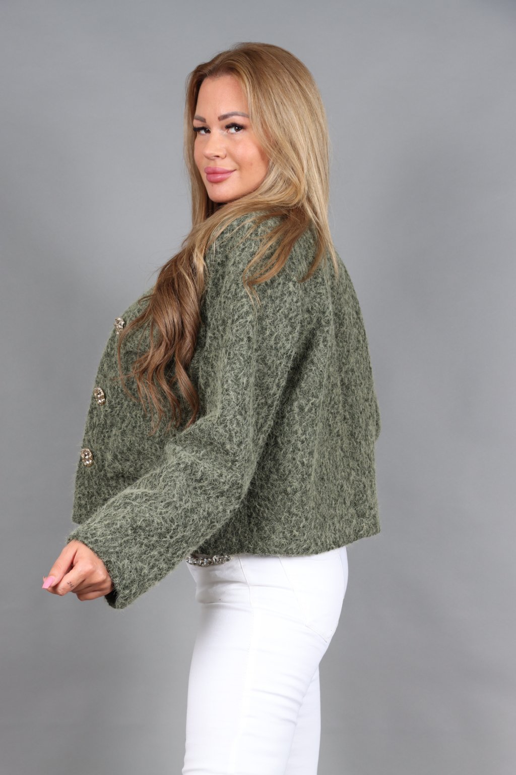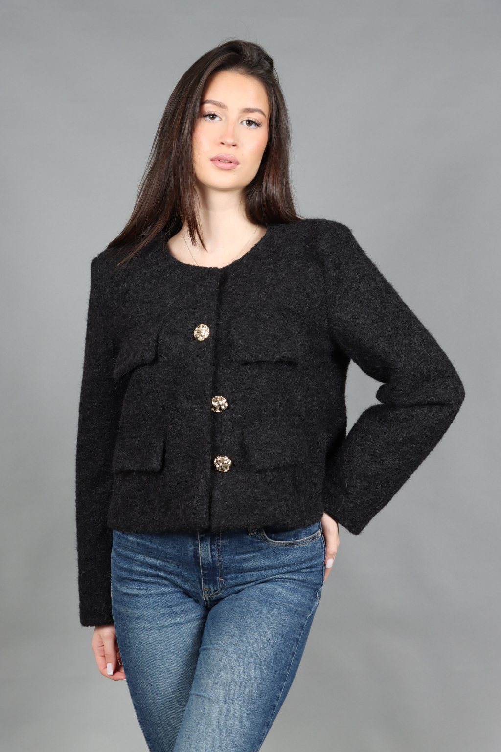 Střih je krátký, elegantně uvolněný a krásně sedí k jeansům, sukním i kalhotám s vyšším pasem. Zlaté ozdobné knoflíky dodávají celému designu šmrnc a pocit skutečné exkluzivity.