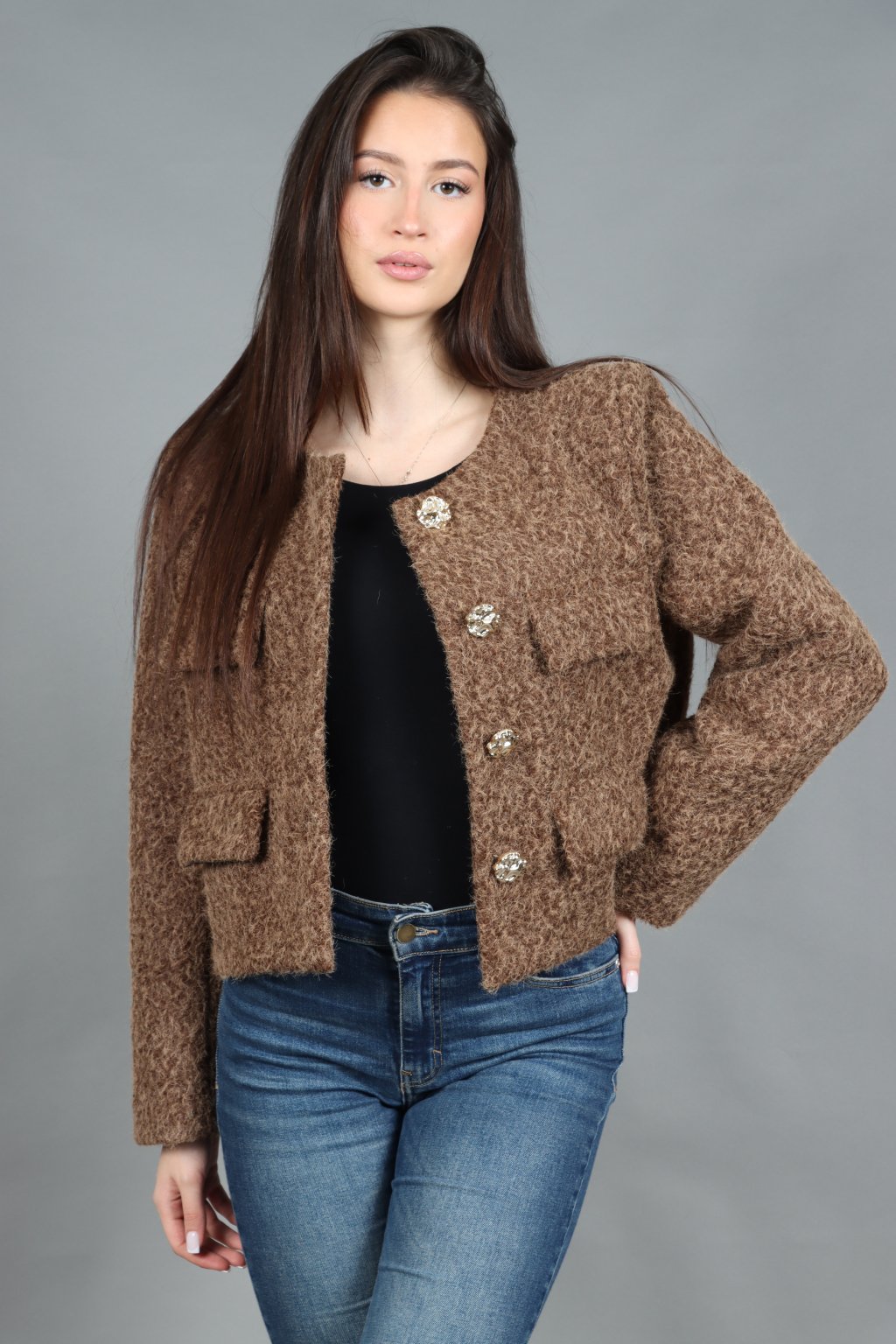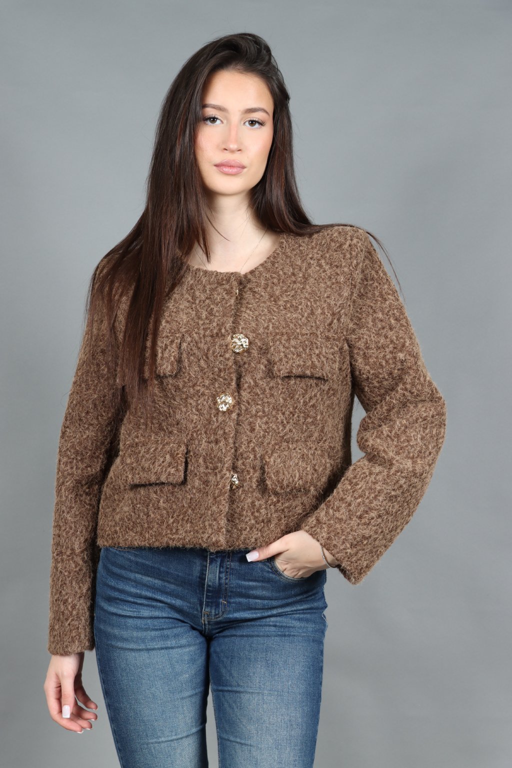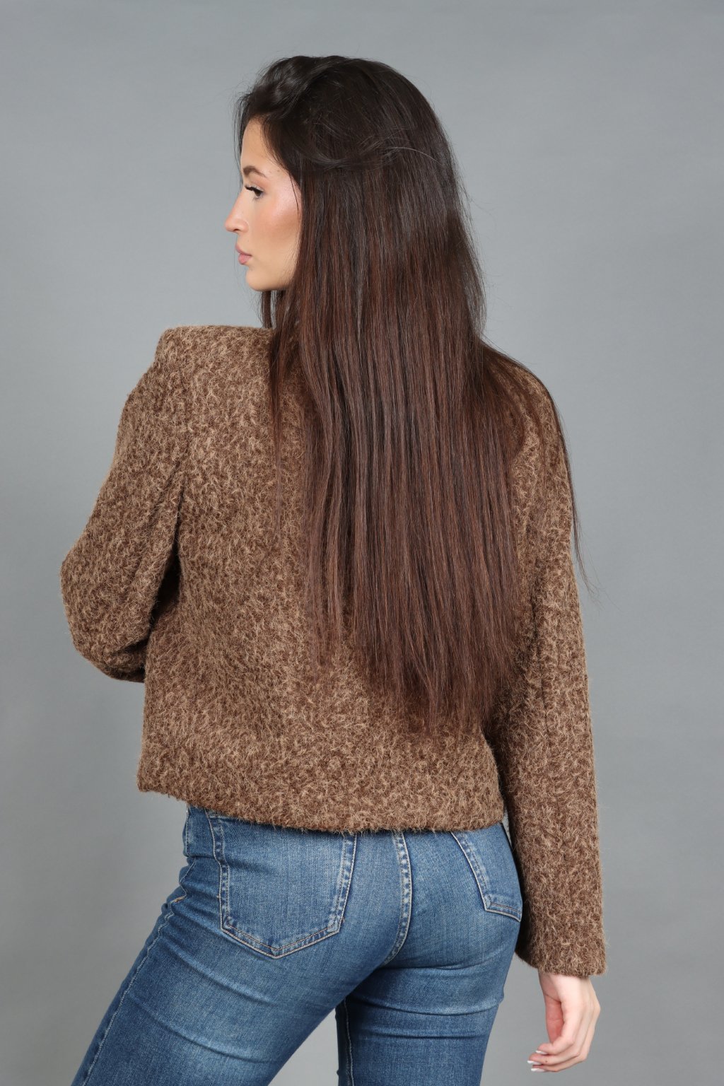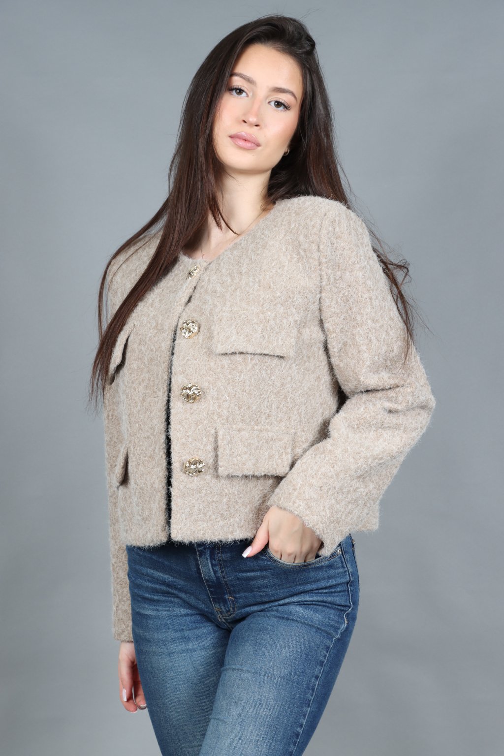 Tohle sako je přesně ten typ, který vypadá luxusně už na první pohled. Je měkké, příjemné na dotek a díky své „chlupaté“ textuře působí moderně, žensky a zároveň opravdu hřejivě.
