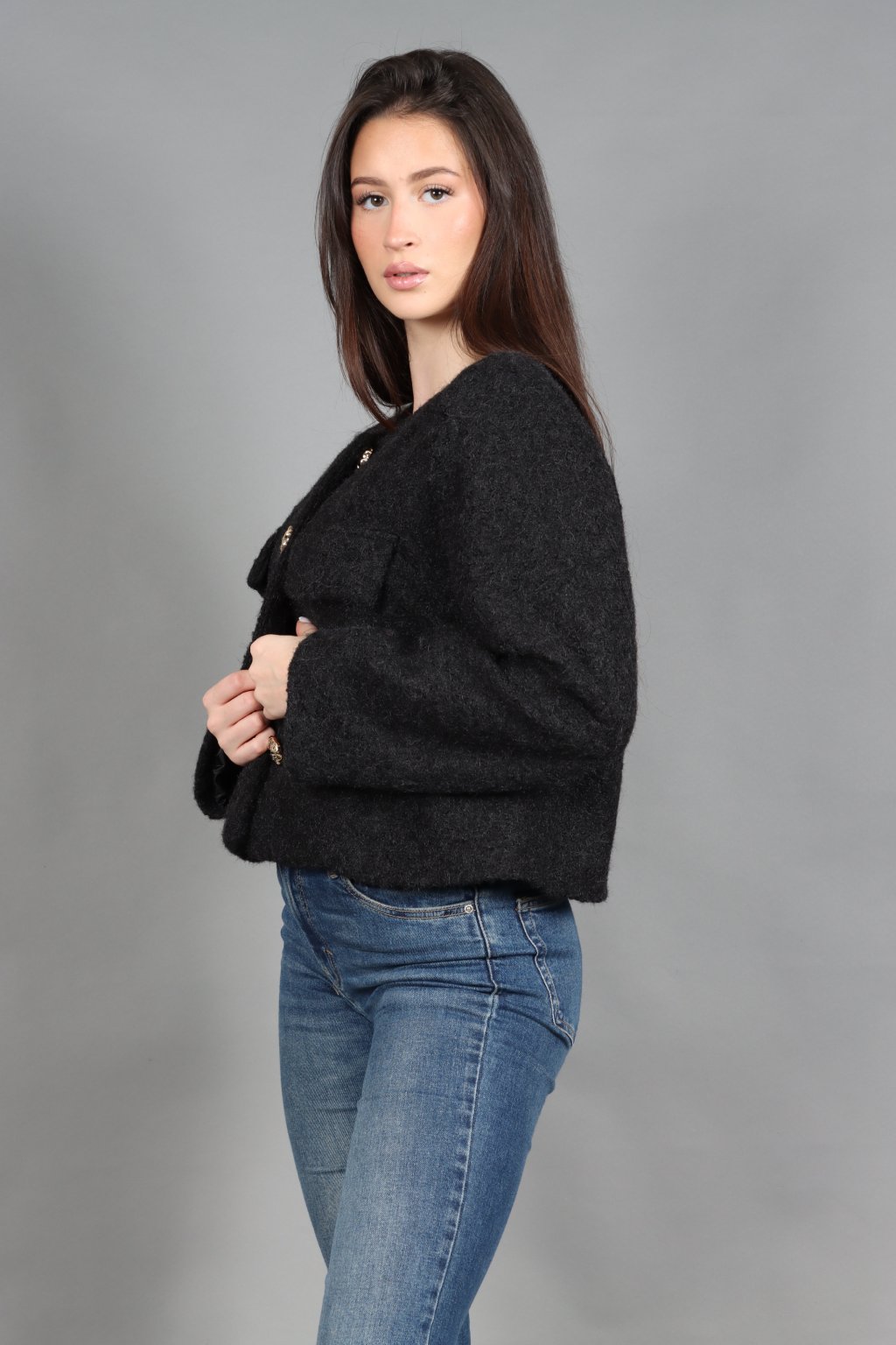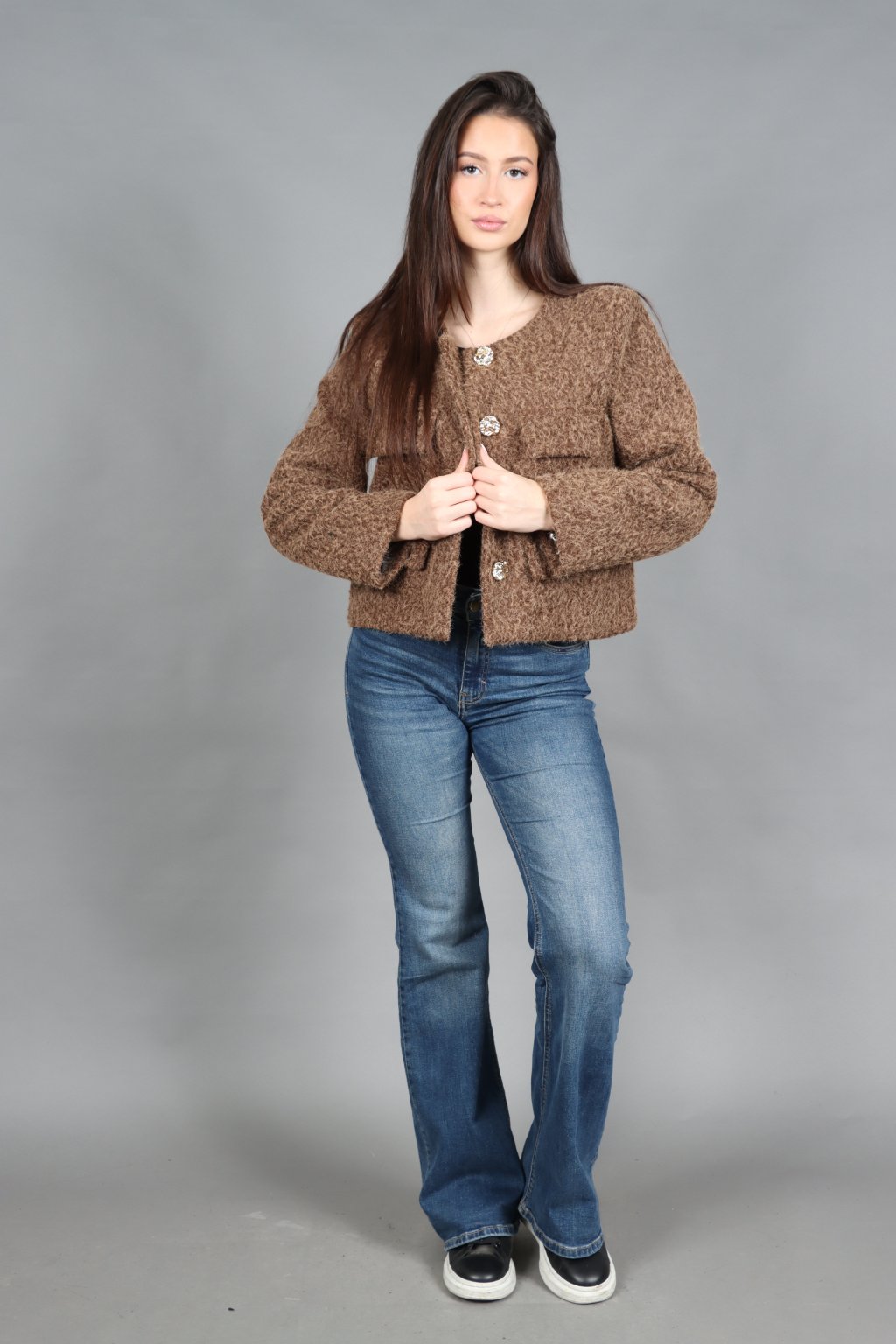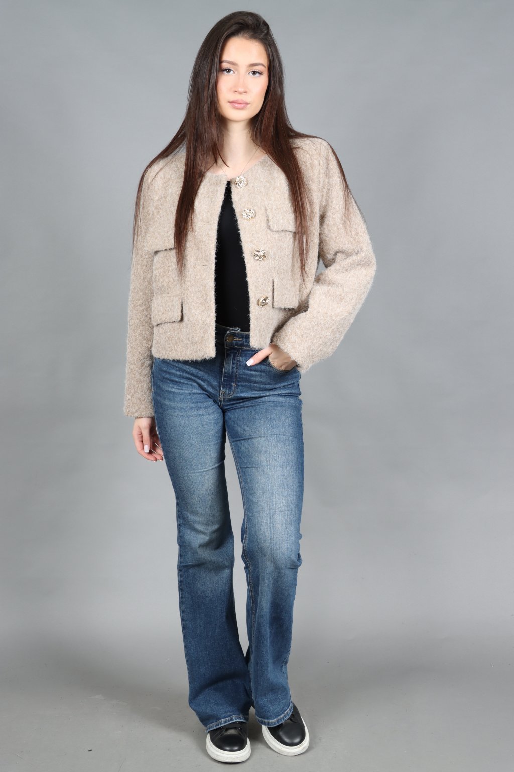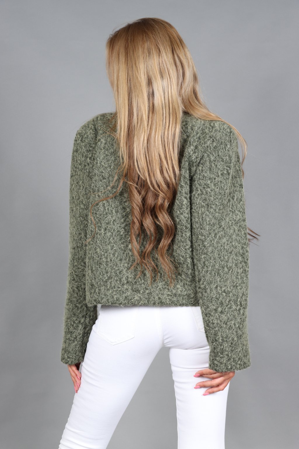 Tohle sako je přesně ten typ, který vypadá luxusně už na první pohled. Je měkké, příjemné na dotek a díky své „chlupaté“ textuře působí moderně, žensky a zároveň opravdu hřejivě.