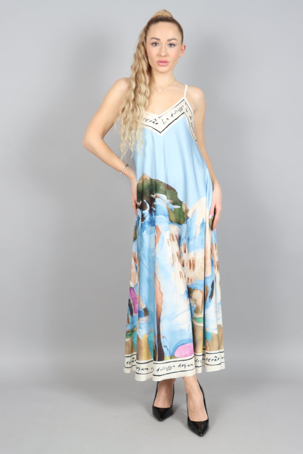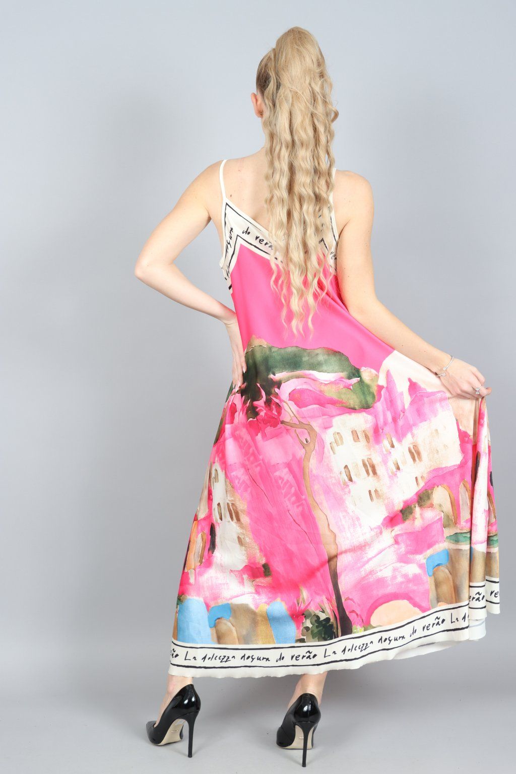 - A ten umělecký potisk? Neopakovatelný. Jemně pastelové tóny, štětcové tahy, inspirace Itálií… zkrátka šaty, které si zaslouží obdiv