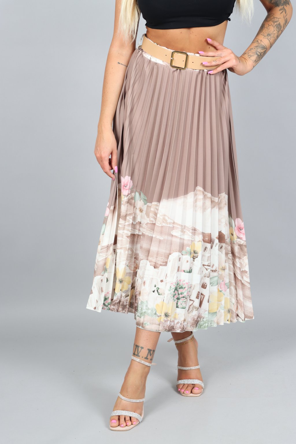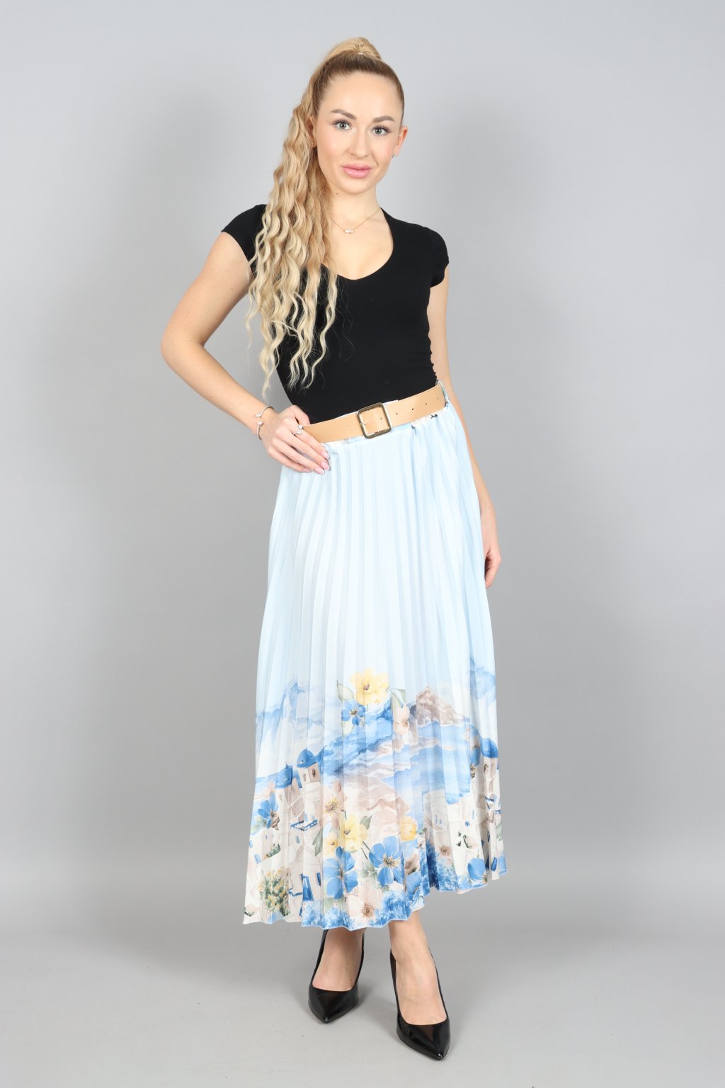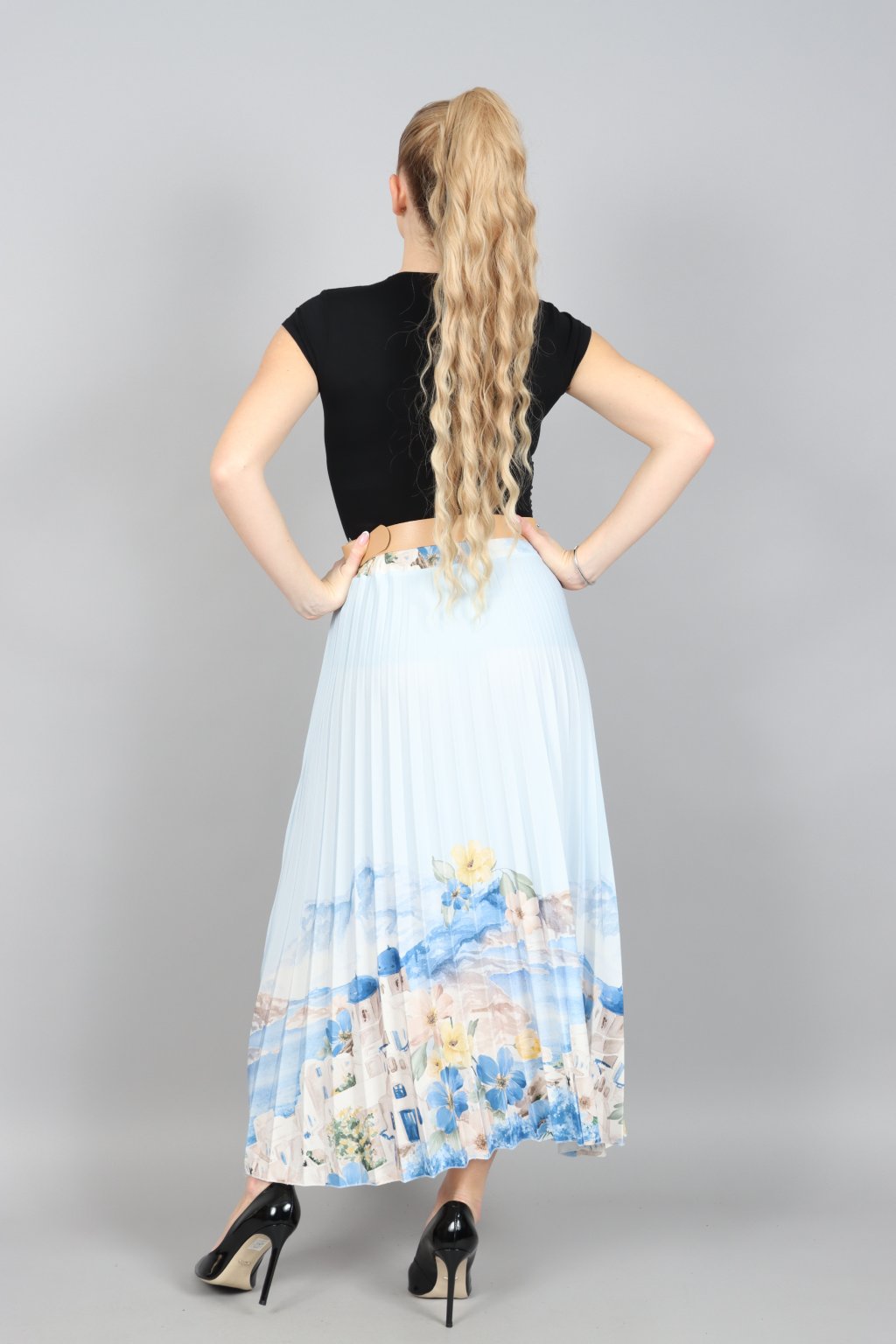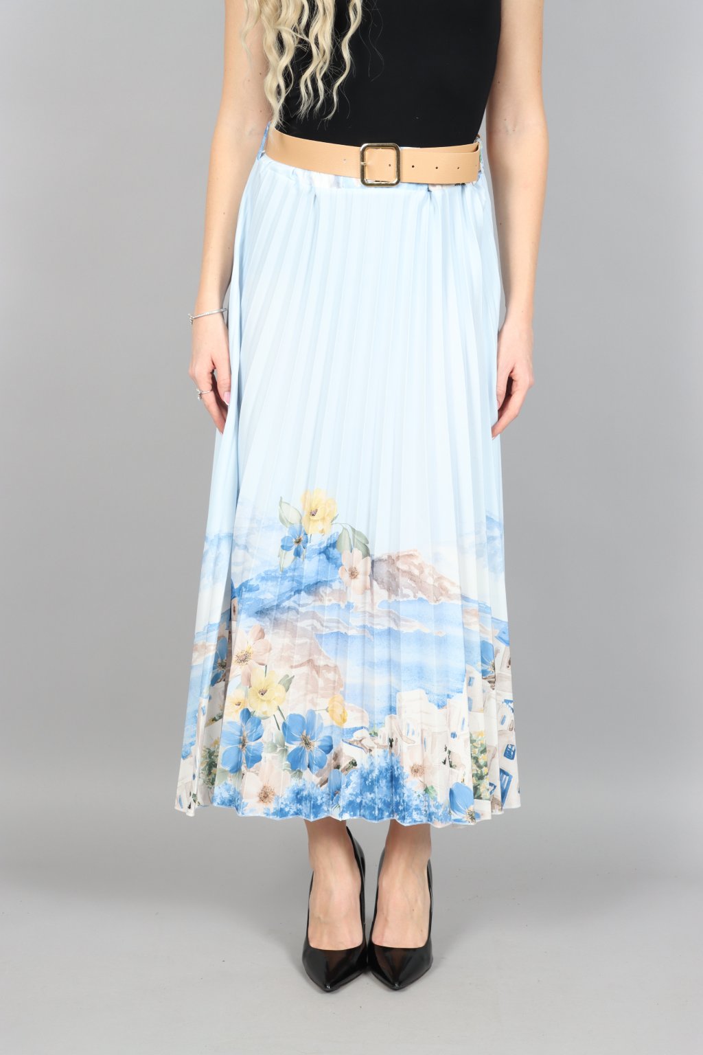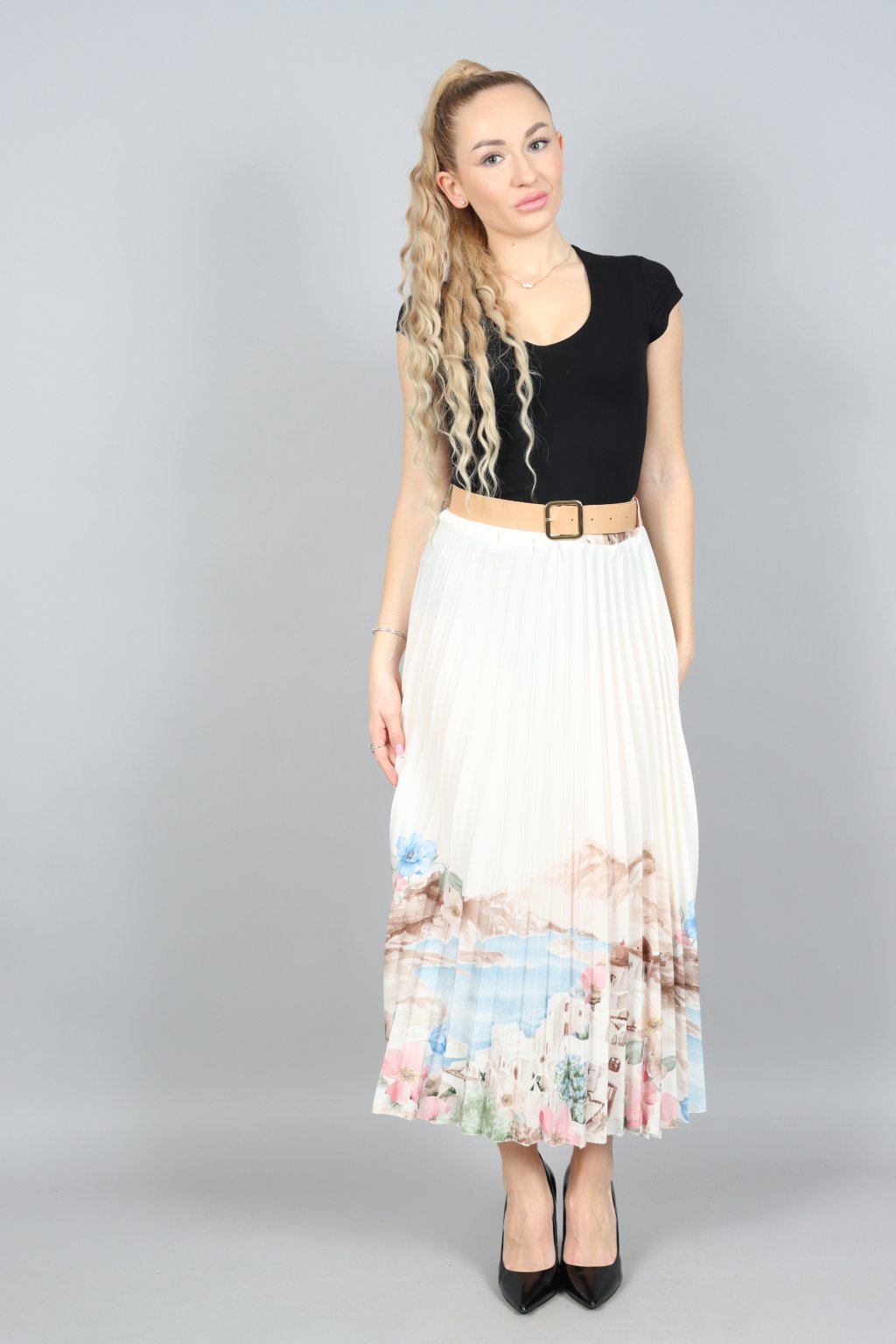 Vzdušná, jemná a přitom nepřehlédnutelná. Tahle plisovaná sukně ARABELA v sobě nese atmosféru letního večera u moře – pastelové tóny, romantický motiv a pohyb, který působí elegantně při každém kroku.